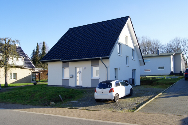 Massivbauweise, KFW Effizienzhaus 55 (EnEV 2014), glasierte Tonziegel, Luft-Wasser-Wärmepumpe Fabrikat Vissmann, Fußbodenheizung, Dreifachverglasung von Schüco, elektr. Rolläden im Erdgeschoss, weiße hochwertige Innentüren, Bäder modern und geschmackvoll ausgestattet mit Badewanne und ebenerdiger Dusche, Bodenbeläge mit Fliesen versehen, Vollholztreppe, Spitzboden ausgebaut Restarbeiten notwendig, Außenanlage und Carport nicht fertiggestellt.